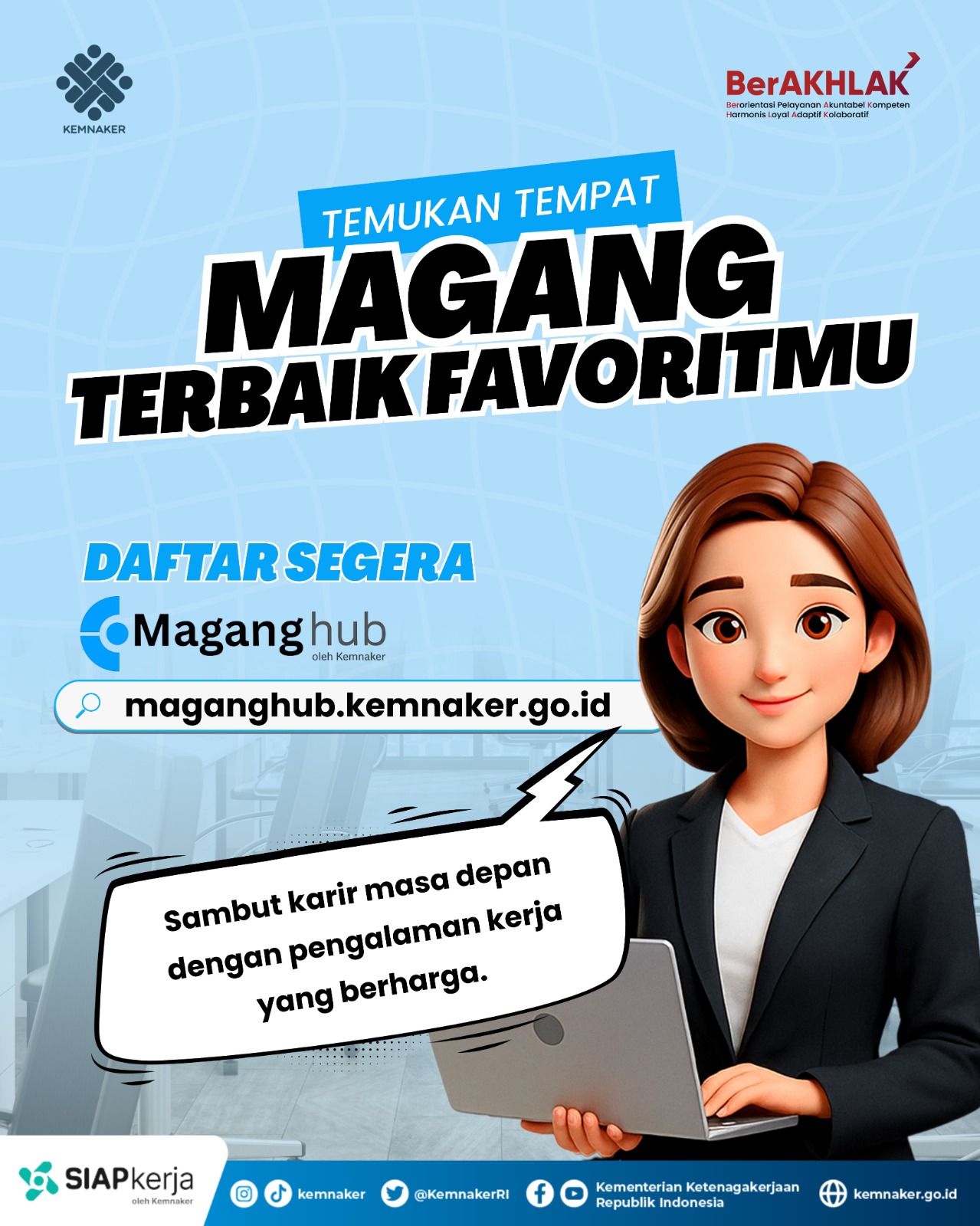 Klik disini untuk menuju website Maganghub Kemnaker untuk melihat panduan dan jadwal magang.
